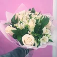 Невесомый букет, пронизанный дымкой романтики и волшебства, источающий нежный аромат и дарящий приятные и теплые эмоции. Букет призван вызывать восхищение своей красотой и лаконичностью.