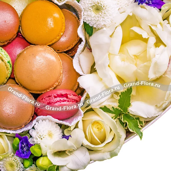 Сладкая жизнь - коробка с пионами и макарунс