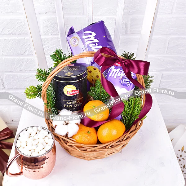 Зимушка зима - корзина с чаем и шоколадом Милка